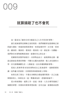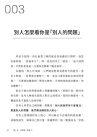 不過,神奇的是,編輯過程中,將這本書仔細讀了兩三遍後,我發現自己真的有意識地開始改變看事情的角度了。若遇到什麼不順心的事,腦海就會不自覺地飄出作者的臉和書中的故事,然後想「哎,就是這樣吧,沒什麼大不了的」……對常常被旁人指教「想太多」的我來說,可是一大顯著的進步。