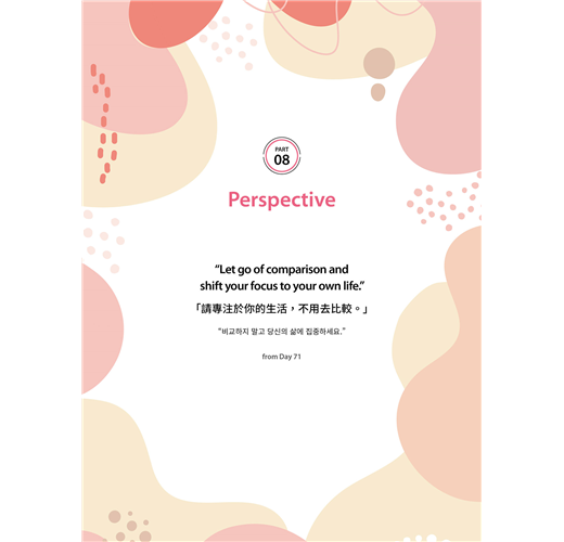 ˙我每天的生活都充滿了各種胡思亂想,但在抄寫的過程中,我卻能拋開這些雜念。感謝這本書,我感覺我的心又平靜了很多。透過寫作和反思內容,我能夠給自己積極的勇氣。