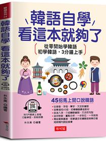 本書主角是台灣人智昊,擔任韓國朋友善熙的導遊和行走翻譯機,無論是在便利商店買悠遊卡,還是搭捷運到夜市品嚐台灣道地美食,或是韓國人初次來台幾乎必去的「예스진지(野十金九)」(韓國人對野柳、十分、金瓜石、九份行程的簡稱),在旅遊的過程中,智昊和善熙使用的韓語都不難,程度約為韓檢TOPIK II 3~4級,現在就打開書,跟著智昊用韓語向韓國朋友介紹台灣吧!