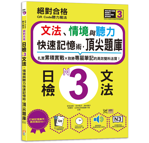 本書不僅涵蓋N3所有必考文法,還提供超精簡說明!用關鍵字點出文法精髓,讓您用最少時間抓住要點。由專業日籍老師撰寫的生活化例句,讓您一秒理解文法。告別繁瑣解說,吸收文法更自然、更直觀,不再頭痛燒腦。