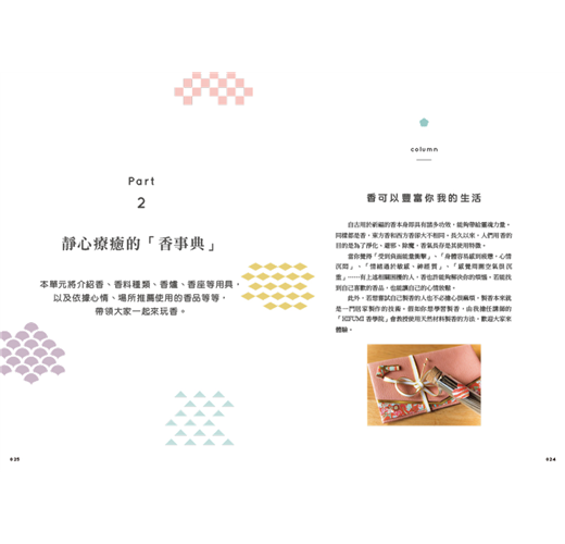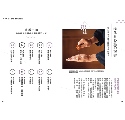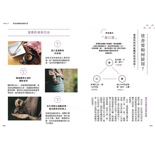 書中介紹許多方法,以學習接觸薰香療癒的生活,