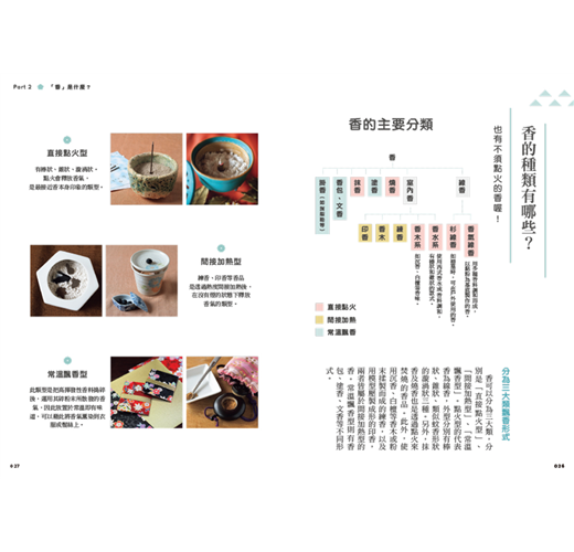 書中包含了「直接點火」的線香、錐香,「間接加熱」的印香、練香,