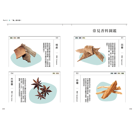 【特色2】活用薰香配方!沉香、白檀、桂皮、龍腦等,教你認識最實用的香料知識!