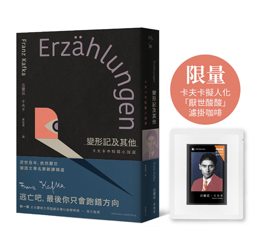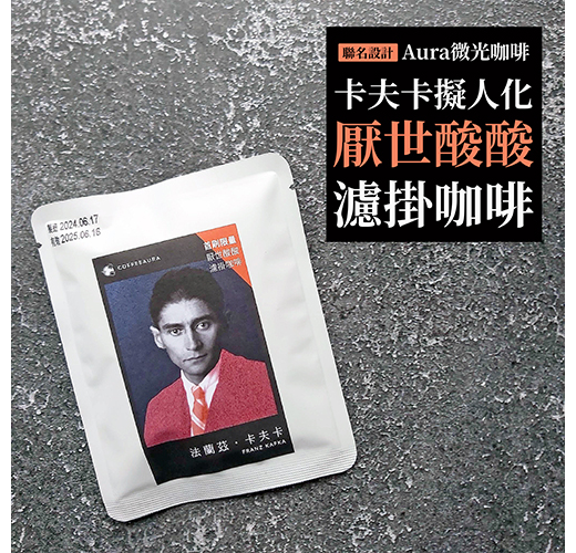 適逢卡夫卡逝世百週年,堡壘文化特別與知名精品咖啡館「Aura微光咖啡」聯名,從新譯本閱讀體驗出發,設計專屬卡夫卡的擬人化配方「厭世酸酸」濾掛咖啡,讓你從另一種角度品味卡夫卡!
