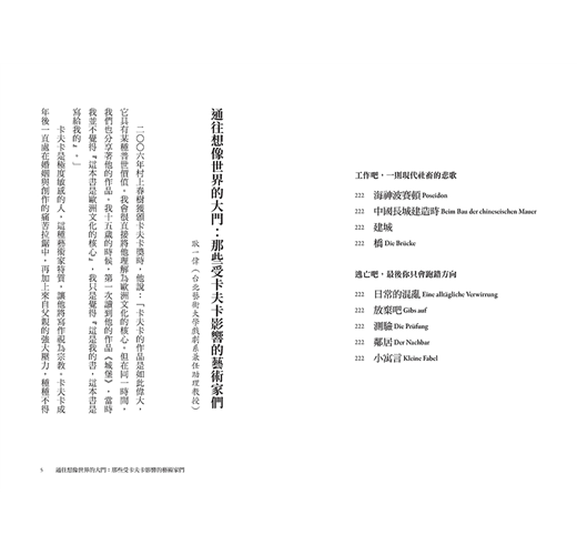 ●「卡夫卡深深影響了我,他是我寫作的典範,教會我如何誠實地擺脫現實。」──石黑一雄(Kazuo Ishiguro)