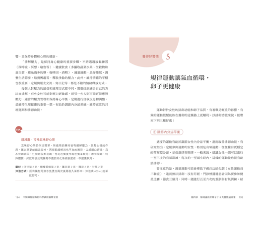 書中不僅詳細介紹中西藥物的治療方式,也提醒大家易忽略的生活作息及飲食起居,讓讀者知道為什麼單純只靠藥物治療往往無法根治婦科問題,其實也需要在生活作息上盡量配合,也體現中醫治療的整體觀。