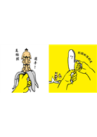 從香蕉裡出現了各式各樣的東西……我原以為只是尋常套路,所以沒有預設任何期待的讀了一遍,沒想到我會笑得不亦樂乎,觀察每一處細節都充滿樂趣。作者的想法天馬行空,讓人完全無法預測下一頁會出現什麼,充滿期待。我的孩子非常喜歡這本書,真的是一直說「再讀一次!」,爸爸已經煩到把書藏起來,不敢讓孩子看到的程度(笑),這本書似乎成為爸爸的心裡創傷了。自從讀了這本書,孩子開始好奇剝開各種水果的皮之後會出現什麼,他現在會很開心的剝開橘子和香蕉的皮。雖然作者說,這本書並非以教育為目的,但不知道為什麼,卻啟發了知育的效果呢。