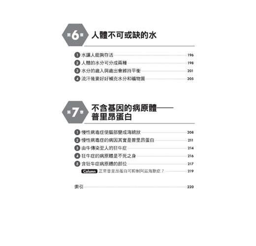 本書拋開艱澀的化學印象,捨棄複雜的原理說明,將生化學基礎知識與切身相關的議題實際結合,以日常生活中常見的基礎問題帶領讀者看見生化學全貌,一同潛入微觀世界,輕鬆理解人體運作基本原理,並引領思考嘗試拆解未知的疑問帶來全新的發現。