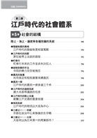 本書先從「歷史發展」的角度切入,依循「開創、承襲、改革、瓦解」的階段,帶領讀者了解江戶時代如何在執政者的鐵腕下開展出繁榮穩定的全盛時期,又如何陷入財政危機,在數次的改革與黑船帶來的衝擊下,一步步走向動盪不安的幕府末期。掌握整個時代的脈絡,再從「社會體系」層面認識當時的社會結構與百姓生活,完整而立體的呈現出江戶時代人們的生活!