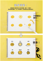 只要依照步驟,用螢光筆畫出圓形或方形等簡單的圖形,並用黑筆勾勒出輪廓,可愛的插圖立刻就完成了!
