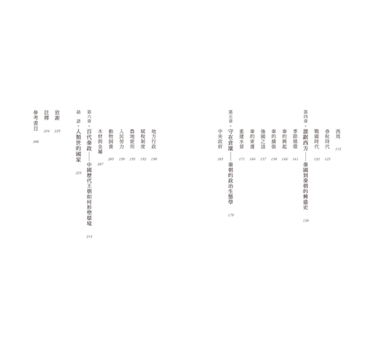 本書尤其著重秦國從邊陲小國到成為中國第一個王朝的歷程,綜合大量最新的出土文獻與科學研究,佐證國家的形成需仰賴一個能管理並擴大農業生態系統的複雜政治體系,才得以成為可能。