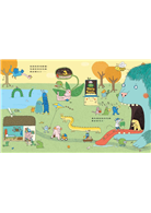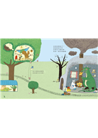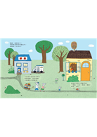 你會看到棕熊家的屋頂直接連著蜜蜂窩、蛇先生竟然吞了一輛汽車,找找看兔子家有幾隻小兔子、還有是誰偷跑進大野狼的家?仔細觀察老鼠郵差把每一件包裹送到誰家去?再猜猜看,最後一件包裹要送給誰?