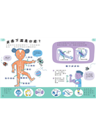這本書從人體的外觀開始,帶領孩子從皮膚、肌肉到骨骼,一步步認識身體的不同部位,以及血液循環、呼吸系統、消化作用、感官和感覺如何運作……