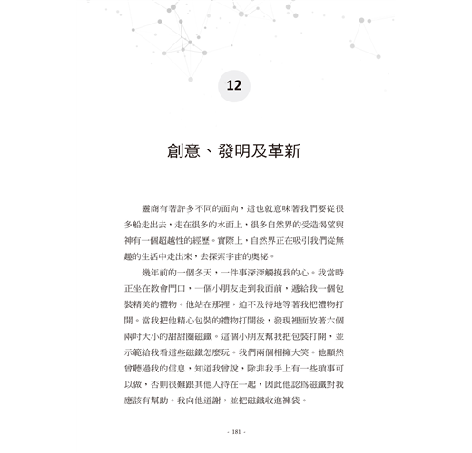 「克里斯‧韋羅頓在他的最新創作中引介給讀者一個新概念,屬靈智力商數是由一個人對於聖靈所說的話的了解程度來決定的。克里斯鼓勵讀者藉由更了解基督的心來學習擁有屬神的思維。當你讀完本書後,這些新概念將會轉化、調整並改變你的心,提高你的屬靈層級!」——鮑勃‧哈森(Bob Hasson),商業顧問、RM Hasson 有限公司 CEO、《尊榮的事業》(The Business of Honor,暫譯)作者