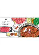 牛排、餃子、壽喜燒、烤雞串、炸豬排等,每道都非常誘人,在飯前閱讀這本繪本可以增加食慾,但是睡前閱讀的話可能會很危險……因為你會餓得受不了!