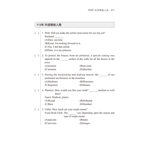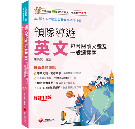 千華特別延聘精通導遊領隊的專家群,以基礎英文為底,再針對命題範圍加強編寫,並精心整理出導遊領到考試中常出現的類型:單字、片語、文法、會話、克漏字及閱讀測驗,將領隊、導遊英文的重點分章分類逐項解說,讓你輕鬆提升自己的英文實力,熟記重點一書搞定!