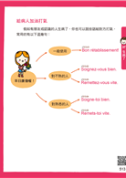 先仔細學習前7個單元,對法文有基礎認識後,再翻到想學習的主題,仔細閱讀可愛的插圖與解說。你會學到各種單字與句型,句型+單字,就能說出更多法語會話!