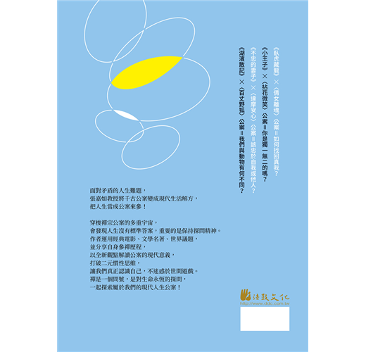 公案有簡單質樸的敘事,卻蘊藏萬物無常、緣起性空的道理,具象化「諸行無常,諸法無我,涅槃寂滅」的般若智慧。本書融通佛法和世學,從多元視角,由《碧巖錄》、《無門關》、《景德傳燈錄》、《從容錄》等合集中,選取數十則著名公案--〈拈花微笑〉、〈倩女離魂〉、〈香嚴上樹〉、〈鹽官犀扇〉、〈達摩安心〉、〈胡子無鬚〉、〈孤峰不白〉、〈一口吸盡西江水〉、〈趙州狗子〉、〈二僧捲簾〉、〈趙州勘婆〉、〈擒住與一掌〉、〈俱胝竪指〉、〈地藏親切〉、〈巖喚主人〉、〈南泉斬貓〉、〈百丈野狐〉、〈女子出定〉、〈香嚴擊竹〉等,善巧引領讀者聆聽禪師說法,進行一場場行者與生活世界的精彩對話。既是禪宗微政治,更彰顯佛法的現代性。