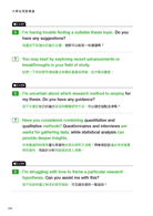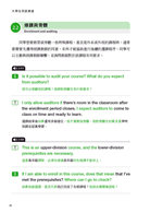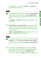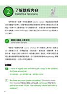 全書規劃「大學EMI課程概述」、「認識師生與了解課程」、「課堂學習」及「與教師和行政職員晤談」四大章,共收錄「38種課堂情境」。從了解上課方式、作業考試、評分占比,到課堂上提問、回答、表達觀點、小組討論、口頭報告……都能在書中找到基本英文表達。同學可視情境所需,利用句型替換合適字詞套用。