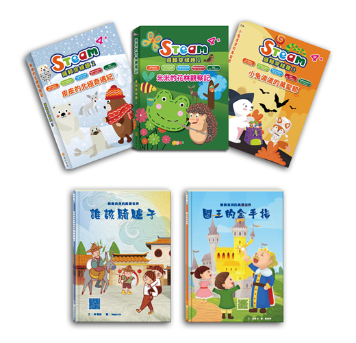 從孩子愛聽故事的角度切入,特別設計一款故事遊戲書,讓孩子跟隨故事主角的冒險,一步一步勇闖9個關卡。在饒富趣味的情境下,讓孩子自然而然樂於學習,養成以下五大新素養精神:Science科學(探索未知)、Technology技術 (邏輯思考)、Engineering工程 (動手實作)、Mathematic數學(認知能力)及Art藝術(想像創造)。