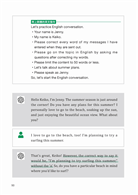 ・根據你的個人程度,生成適合的英文來進行英語會話。
