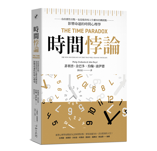 以上和「時間」有關的想法,隱藏著許多盲點與難以改變的慣性,導致我們陷入人生困境。金巴多博士的時間心理學,可以破解這些慣性盲點,讓我們面對「時間」時不再緊張、空虛、懊悔,進而重新設定自己的心理時鐘、走出困境、改寫命運。
