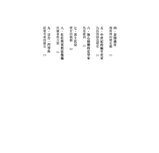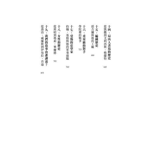 首先介紹一些我個人的歷史。一九六○年九月,我進入唐塞德學校(Downside School)就讀,這所學校位於英國鄉間腹地,距離巴斯(Bath)這座古老城市約半個小時的車程。這所羅馬天主教男子學院受到唐塞德修道院直接控制,那間教堂所屬的本篤修士團體在四百年前創立於哈布斯堡尼德蘭(Habsburg Netherlands),後來因為法國大革命而遷移到英國。 我被分入一個有十二名學生的小組當中修習中世紀歷史,小組成員的年齡介於十三至十五歲之間(我當時十三歲)。我們的專題科目是亨利八世解散修道院,而這項主題的首要權威是大衛‧諾爾斯(David Knowles),他在當時是劍橋大學的中世紀史教授。他對那些入世的修士所抱持的觀點直截了當:「他們罪有應得。」直至我在唐塞德學校的學業即將完成之前,我才得知諾爾斯自己曾是那裡的修士,並且在二十年前左右於不太愉快的狀況下離開。我當時尚未成形的心智產生了一個念頭,心想他的判斷必定不免受到他身在修會裡的經歷影響。 出社會之後,我開始對其他作家心生好奇。他們同樣形塑了我們對於過往的認知,但他們的人生又如何形塑了他們的書寫?我閱讀約翰‧盧卡奇(John Lukacs),他提到「歷史」帶有雙重意義,因為「歷史」除了是過往之外,也是對於那個過往的描述,所以每一位歷史作者都是一名詮釋者、一面濾鏡,不免為歷史注入他們自己的觀點。 探討歷史的本質與史學家的書籍多不勝數,就算單純只就英文著作而言也是如此。但儘管這樣,這個領域還是有許多空間可讓人開闢自己的道路。和我想寫的這本書最近似的著作,是已故的約翰‧布羅(John Burrow)所寫的《歷史的歷史》(A History of Histories, 2009),他當初帶著精心挑選的三十七部文本閉關於自己的牛津書房裡,而寫出了這本權威性著作。如同他指出的:「除了最乏味的極少數之外,幾乎所有的史學家都帶有一些個人特有的缺陷:某種程度的共謀、理想化,以及認同;某種義憤填膺、矯正錯誤或者傳達訊息的衝動。他們最引人入勝的書寫,經常就是源自這些缺陷。」他接著檢視對於過往事件的描寫如何隨著政治、宗教、文化與愛國精神的影響而改變。不過,他聚焦於古代與中世紀歷史,而且主要的興趣是史學史(也就是對於歷史書寫的研究),而不是在於史學家本身:這就是我們兩人著眼點的不同之處。 吉朋記述羅馬帝國衰亡的著作,是最廣為人知的歷史著作,而他也寫了六冊極為不同的自傳,並且深深明白對於過往的陳述必然是形塑該項陳述的智力所造就的產物。在〈米底亞王國回憶錄〉(Mémoire sur la monarchie des Mèdes)這份沒有出版的手稿當中,他省思指出: