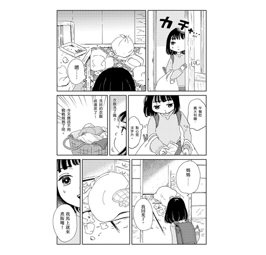 這部漫畫讓我們貼近非典型家庭下長大的孩子,更可以安慰曾在原生家庭裡備感寂寞與壓抑的讀者。有人說成年,是放下對父母的期待,把自己愛回來。願在這條路上,我們都更接近自己的感受、更善待自己,乃至於更同理我們所愛的人。」
