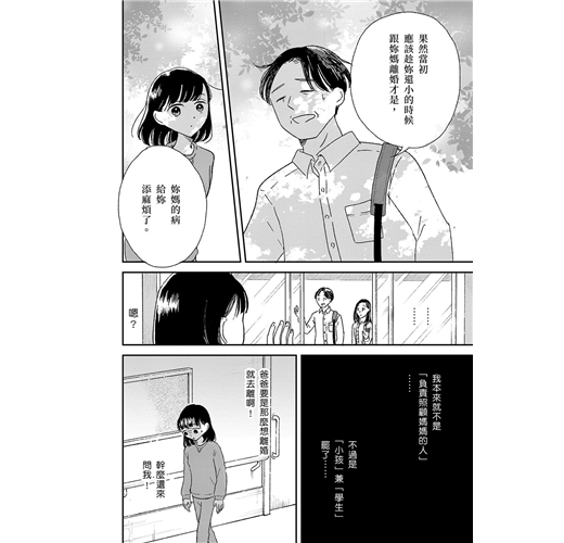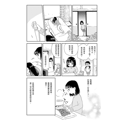 本書以漫畫描繪照顧精障母親的日本女孩小唯,她在家人關係與照顧愛恨中被迫長大、無所適從、左右為難,從童年延續到成年的痛苦掙扎,該犧牲或自私?誰又能陪伴懵懂的兒少照顧者找尋答案?