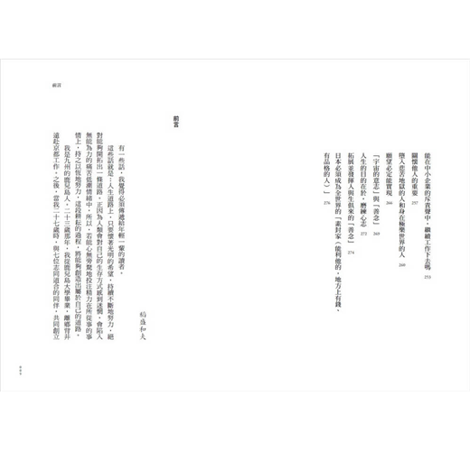 主要著書有:《稻盛和夫的哲學:人為什麼活著》、《高收益企業》、《稻盛和夫的中小企業經營學》、《人生的王道:人如何活著》等。