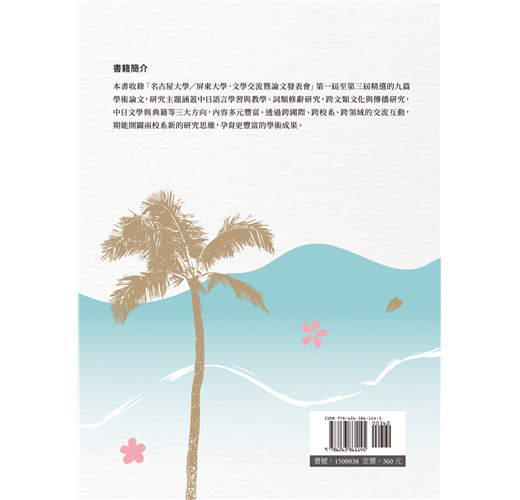 本書收錄「名古屋大學/屏東大學.文學交流暨論文發表會」第一屆至第三屆精選的九篇學術論文,研究主題涵蓋中日語言學習與教學、詞類修辭研究,跨文類文化與傳播研究,中日文學與典籍等三大方向,內容多元豐富。透過跨國際、跨校系、跨領域的交流互動,期能開闢兩校系新的研究思維,孕育更豐富的學術成果。