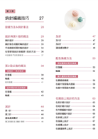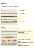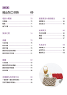 第4章 織品加工修飾:完成作品的所需的織片後,凡是最後固定針目的收針、收縫;織片的併縫&綴縫、藏線、整燙技巧,以及毛球、流蘇等能夠提升織品精緻度的技巧都匯集在此,這些細節往往是決定作品美麗程度的重點,不可小看喔!