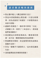 ‧我喜歡書中的書寫提示,它讓我真正去思考,也讓我開始寫下自己的想法。