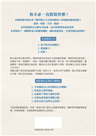 精心設計的引導式問句,幫助你認知並承認自己最深層的情感、覺察你的負面念頭,然後寫下來,把紙撕下、扔掉,透過具體行動清理。接下來,寫下那些值得感恩、贏取勝利、達成目標的正面記憶,釐清自己真正重視的人事物,追求讓自己真正幸福的人生方向。