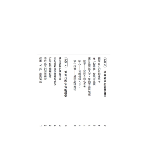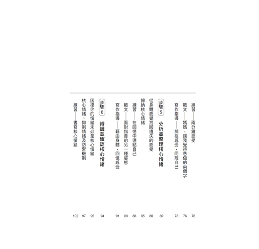 這個過程並不愉悅,甚至需要一定的勇氣。因此,如果你想跟隨書中內容進行練習,我希望你能給自己獨處的時間與空間,讓自己有能力面對曾經受傷的情緒。