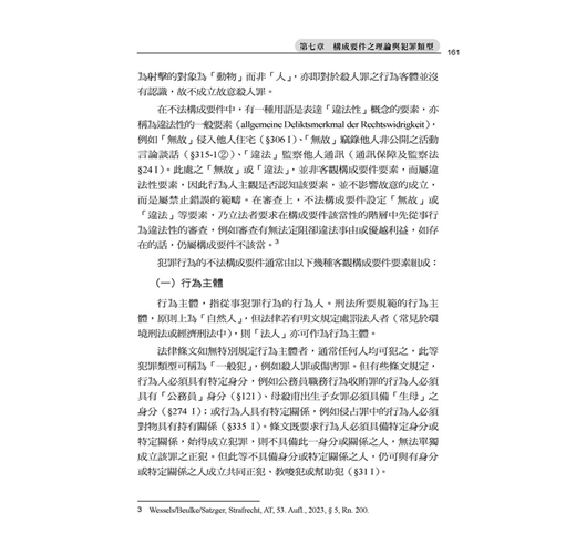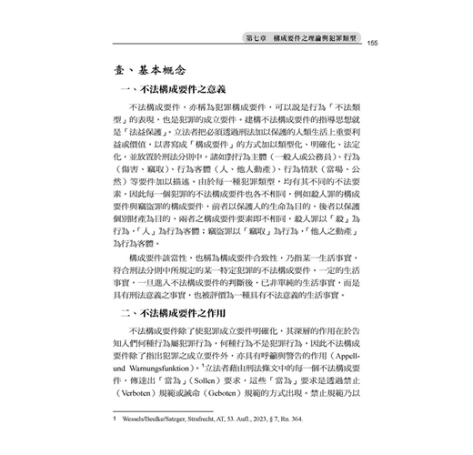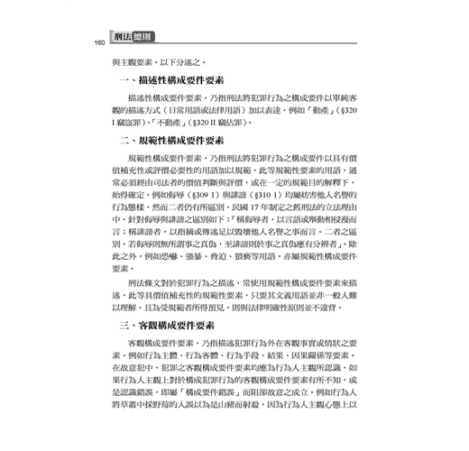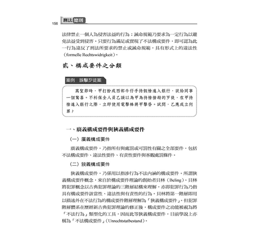 本書是「刑法總則」教科書,也是一本學習刑法的入門書。為使讀者精要且正確地認識刑法基本概念,學習如何解釋與理解刑法條文的內容,本書許多章節均設計了「案例事實」作為引導,以啟發學習動機與問題意識。此外,本書除了以體系化方式介紹刑法理論之外,亦整理與分析重要實務判例、判決之見解,使讀者能可以同時掌握刑法學說與實務見解趨向。
