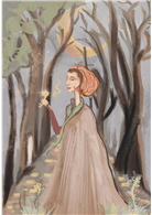 對方似乎也聽到開門聲而轉頭看向我,其眼中流露能洞悉一切的智慧,勾起的微笑醞釀著幸福與喜悅。微風輕掀起她大地色的斗篷,她朝著我招招手,好像等待我多