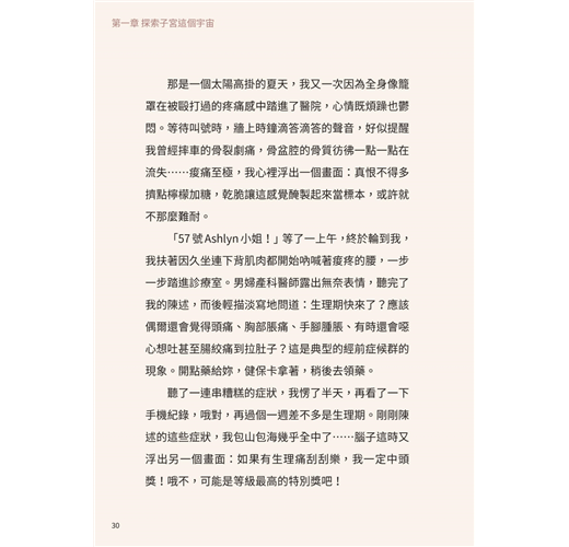 「57號Ashlyn小姐!」等了一上午,終於輪到我,我扶著因久坐連下背肌肉都開始吶喊著痠疼的腰,一步一步踏進診療室。男婦產科醫師露出無奈表情,聽完了