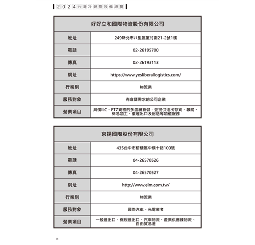 我國國民消費所得增加,整體生活型態也產生了變化,對商業環境下冷鏈物流的需求越來越高,無論生鮮食品、冷凍冷藏加工產品甚至藥品管理在在需要冷鏈技術來支援,本刊有鑑於此特別與台灣冷鏈發展協會合作,編輯—2024台灣冷鏈暨設備總覽一書,期望對台灣冷鏈發展帶來新的氣象與發展願景。