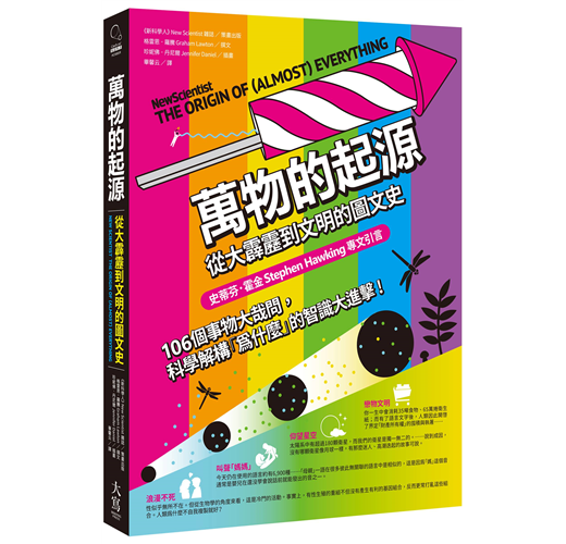 《新科學人》雜誌主編格雷恩‧羅騰和得獎畫家珍妮佛‧丹尼爾聯手,精選六大主題,將充滿意外與驚奇的萬物起源視覺化,說明宇宙如何形成、什麼是暗物質、人類的進化過程、酒的歷史、財產觀念的成形、人類情感背後的基因驅動與鼻屎的秘密。直擊核心的敘述,隨時顛覆你的常識!