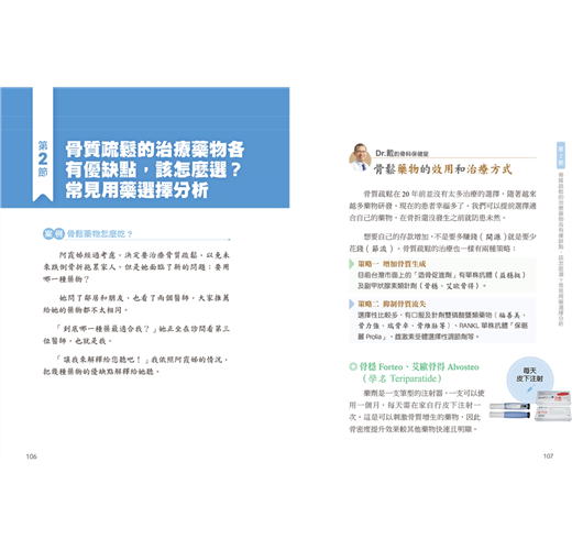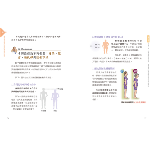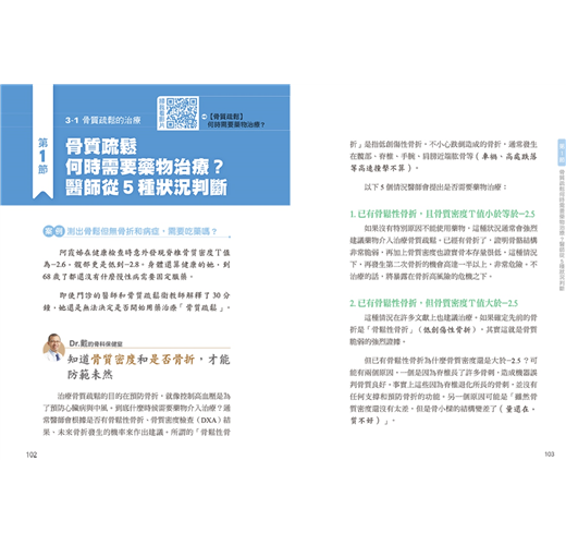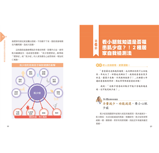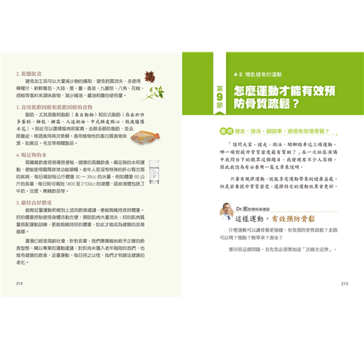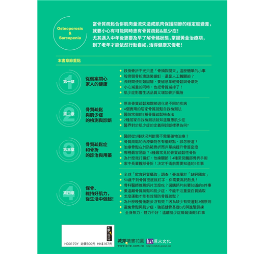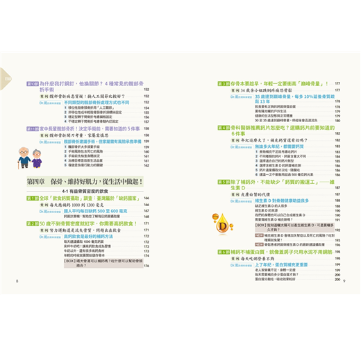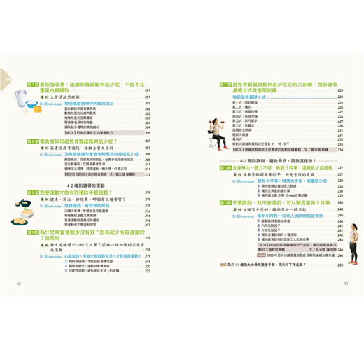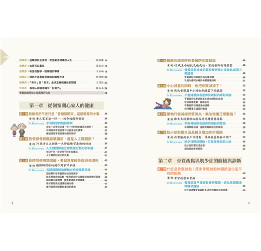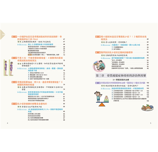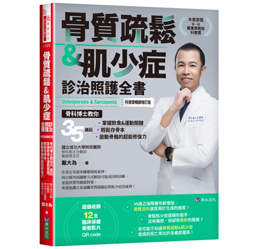 不僅如此,為了建立對藥物、飲食、運動、生活習慣等正確觀念,廣蒐國內外資料並邀請專家協助以圖文並茂及Dr. 戴的骨科保健室方式娓娓道來,絕對是可以讓每位讀者立即增加對抗骨質疏鬆症與肌少症的「查克拉」。書中有幾