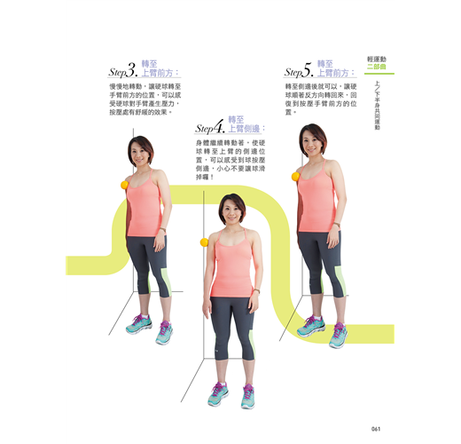 在急性期受傷的組織應該休息避免過度刺激及不當受力,等到急性症狀改善、疼痛明顯舒緩後就能進入本章節,透過包括「球按摩」在內的「上/下半身共同運動」,逐步改善身體狀況!