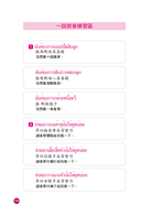 不用上補習班,有此一書,就好像請了一位免費的泰語家教,是你自學泰語的好幫手。請讀者注意錄音老師的唸法,跟著老師的發音,才能講出最標準的語調,反覆練習,自然說出一口純正的泰語。