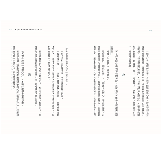 反而是懷疑自己不夠努力,總是勉強自己做得更好。