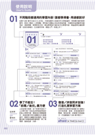 專為自學者設計專屬學習計畫,將關鍵單字,或是與單字例句相關的衍生重要單字,都標示出編號,並獨家設計前尋←/後找→功能方便讀者邊學邊預習、學了再複習,查詢迅速、方便。