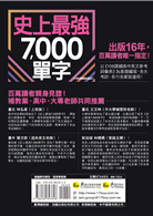 會知道《史上最強7,000單字》是為了幫學生選一本自學的單字書,在書店眾多的單字書中我選了這本,雖然剛開始時覺得字好多,對學生來說是不是太沉重;但仔細閱讀,發現此書該有的都有,不多不少剛剛好,適合各種程度的讀者使用。感謝此書幫助了我的學生,也讓我認識了更多的單字和用法!