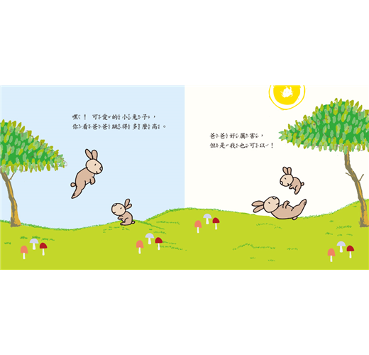 動物寶寶崇拜爸爸跳的遠、媽媽飛的高,