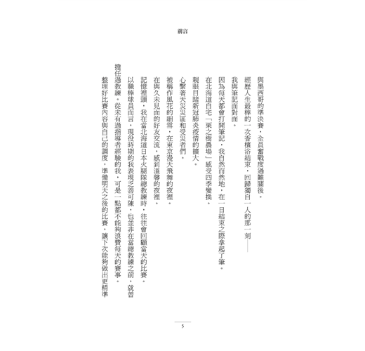 這本書是2019年出版的《栗山筆記》續作。稱不上立下什麼豐功偉業的我,又再次寫了新書。我因為自己不知天高地厚而渾身顫抖著。