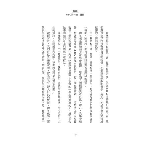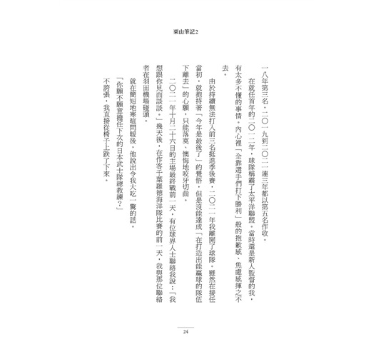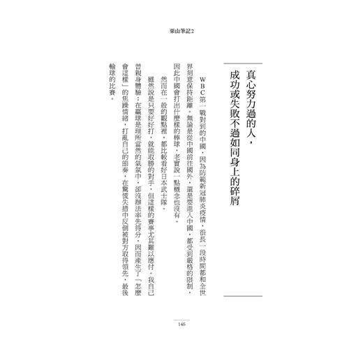 不管是身而為人,還是作為職棒總教練,它們都有太多值得參考的地方了。我不斷寫下的棒球筆記,就在不知不覺間,紡織成了一本談論人生的筆記了。