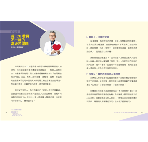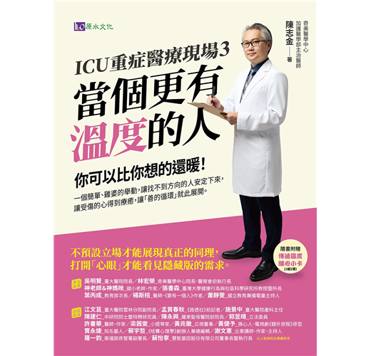 人生無常,所以要有備,因為有備,才能從容以對,而有備的心靈資糧之一就是奇美醫學中心加護醫學部主治醫師陳志金所寫的《ICU 重症醫療現場3:當個更有溫度的人》。